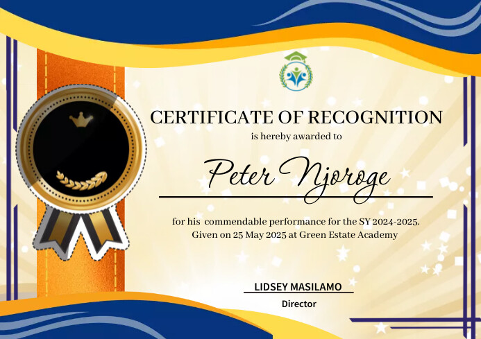 Blue and Orange Certificate of Recognition Template | PosterMyWall